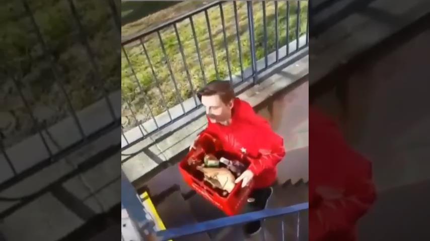 Mladý muž bude riskovat pádu ze žebříku, když klouzat s rámem s duchy v ruce. nenechá jediný okamžik plátně rukách, létání s vtipně přes zábradlí.