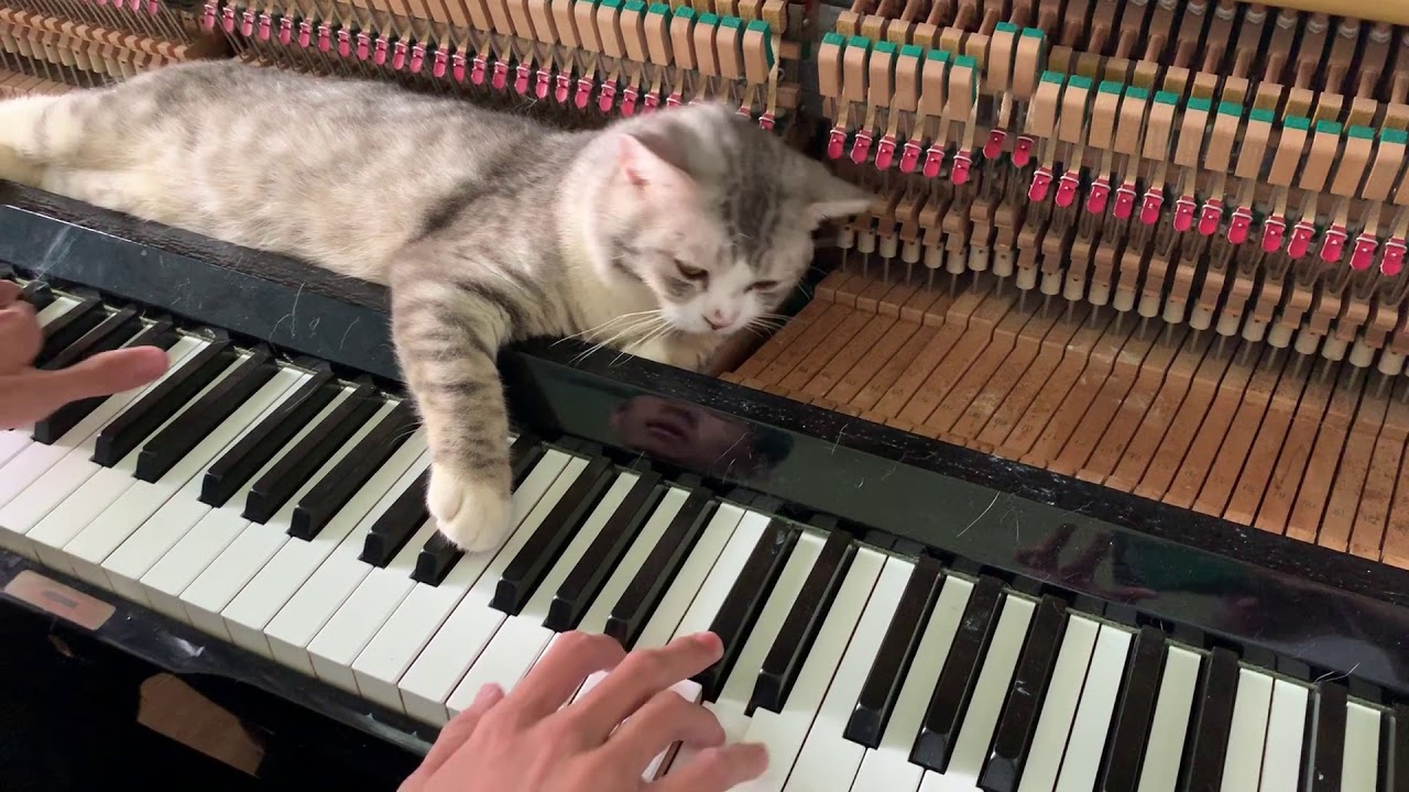 Nguyễn Hoàng Minh hraje skladbu „River Flows In You“ od Yirumy, spolu s jeho kočky rád spí na klavír.