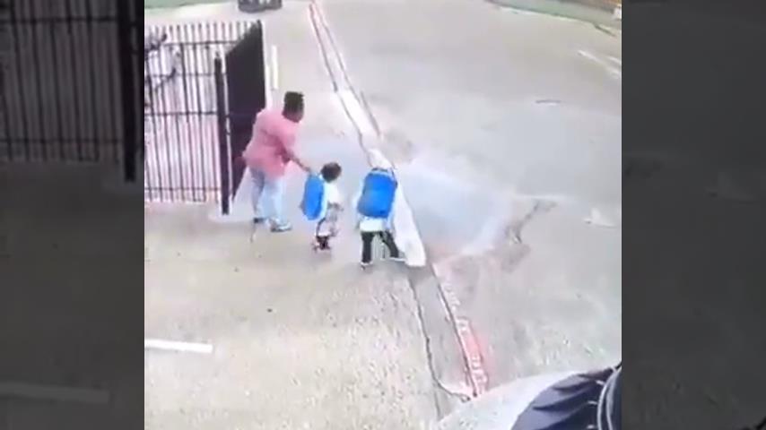 Dvě děti na lyžích najednou, aby se zabránilo louže, a nalákat své matce hodil ji na ulici. WTF?!