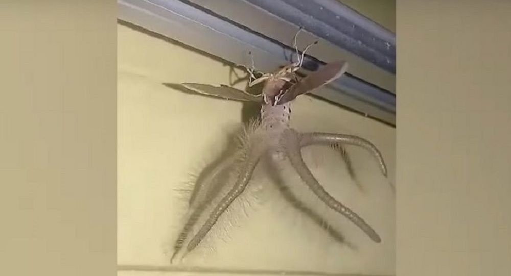 Člověk objevuje podivný hmyz v domě na ostrově Bali, Indonésie. Jedná se o druh můra Creatonotos Gangis žije v jihovýchodní Asii a částech Austrálie. Mužské můry tohoto druhu mají čtyři trubkovité, průsvitné žlázy (parfémové orgány). Ty slouží k vyzařování feromony na přilákání kamarádi, zatímco vlasy pomáhají dodat vůni ve vzduchu pro ženy.