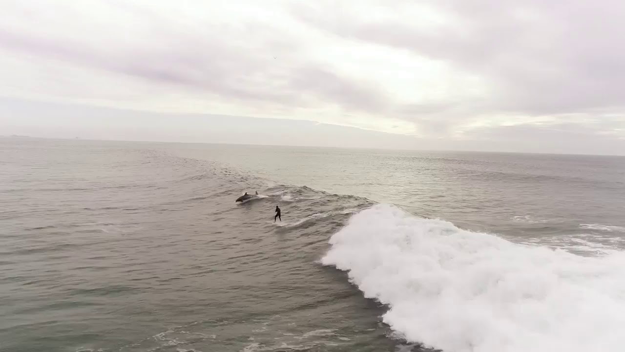 V jižní pobřeží Kalifornie, Surfař bude žít jedinečný zážitek. Jak učinil surfování na vlnách, Alden Blair navštívil hejno delfínů, který chtěl plavat další.