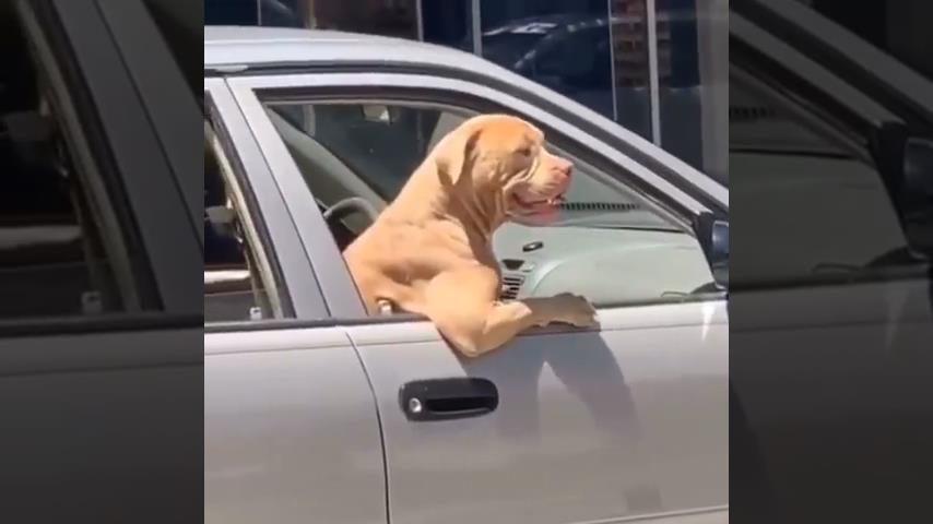 Pes dělá uvolněnou jízdu v autě, a snižuje provoz v okolí.