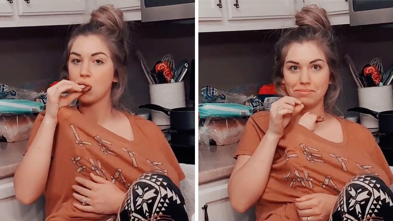 The Hollies Haire sající 12měsíčního dceru Harper doma v Elkins Arkansas, když se dostal k jídlu cookie. Děvčátko položila ruku dovnitř košile mámy a popadl sušenku z rukou.