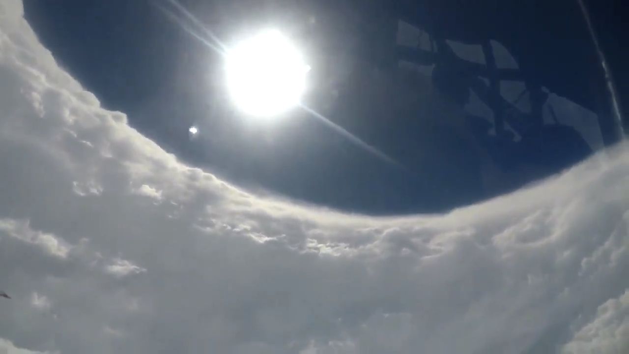 Neděle 01.9.2019 průzkumný letoun amerického letectva natáčel oku hurikánu Dorian (kategorie 5) inflight. Tento relativně klidné oblasti obklopené mraky našel ve středu hurikánu.
