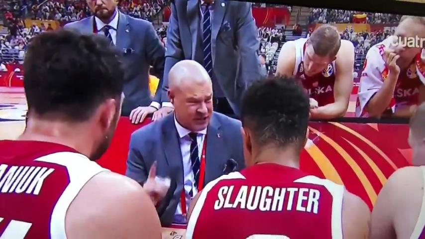 Během time-outu v Číně mistrovství světa v košíkové, Polsko trenér dává pokyny hráčům. Ale jeho hlas se podobá tomu Mickey Mouse.