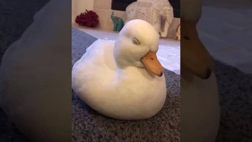 Kachna nemůže zadržet ospalost a, a její hlava padá dopředu, jak usnout.