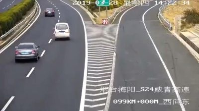 Řidič dodávky v Číně prudce zabrzdit uprostřed dálnice, když si uvědomí, že udělal chybu a musel se obrátit na pravé exit. S brzdovými příčin nehoda, jako další dodávka, která se vracel se převrátil a zároveň se snaží, aby se zabránilo kolizím. Řidič nebude zastrašit, Vezme svůj čas a pak couvání, pokračovat v cestě směrem doprava.