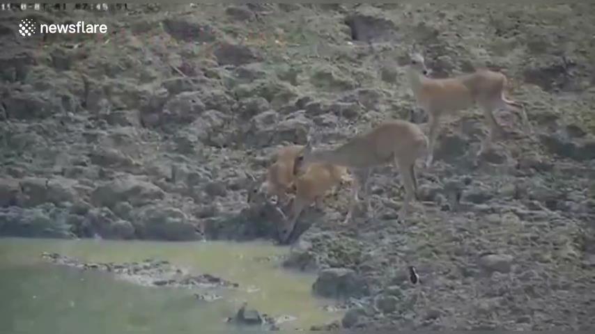 Divoké zvěře kamerový zaznamenal děsivý okamžik, kde divoký python chytne jelena na břehu jezera ve střední Indii. Video byl výstřel na 29. května u lesa Chanda Fores, ve státě Maháráštra.