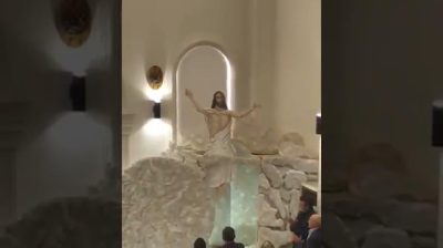 Zastoupení vzkříšení Ježíše v kostele, s některými filmovými efekty.