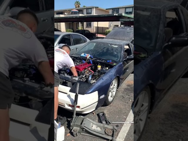 Guy se snaží motor unflood vozu způsobí požár auta.