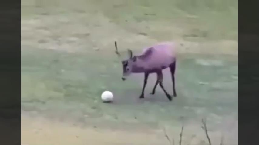Jelen dává gól do prázdné rohy, a pak slaví.