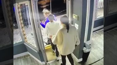 Tři dívky pocházejí ze skladu, ale bezprostředně hraničí s vozem, který běží s rychlostí nad louži.