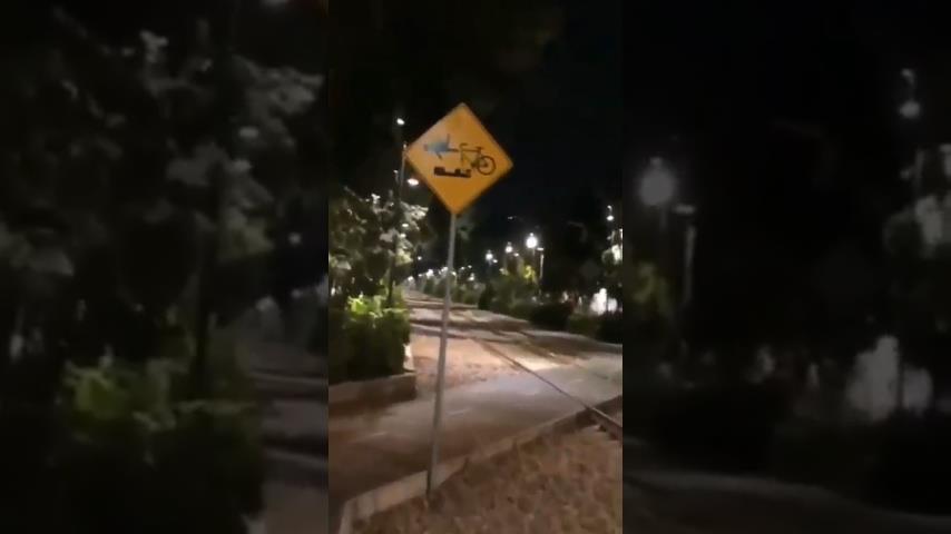 Mladý muž má nehodu s jeho kolo na železničním přejezdu, přesně tak, jak je popsáno v výstražnou.