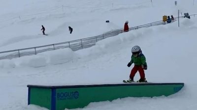 Dítě se pokusí provést skok na lyžích, ale nakonec skončí v legrační postoj. Na konci rampy bude klesat před hlavou, zatímco helma bude i nadále skluzu ve sněhu na několik metrů.