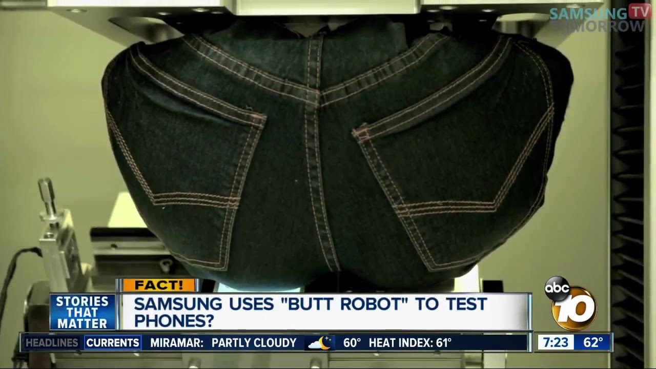 Podle této zprávy ze strany USA sítě ABC, Samsung používá robotické umělé posteriorně k emulaci, když někdo sedí na mobilní.