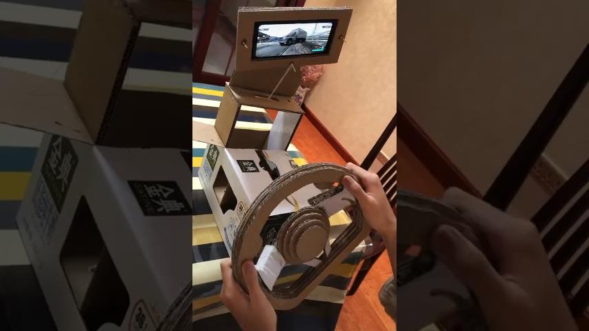 V Jižní Koreji, uživatel Taek Bong zkonstruoval trenažéru lepenky, která mu umožňuje hrát závodní hru pro mobilní telefony.