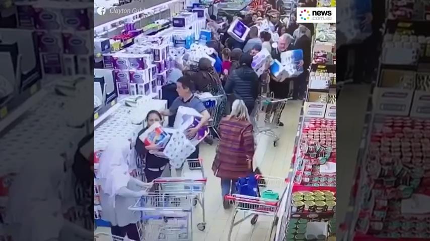 V Austrálii, Kamera zachycuje supermarket ve spotřebitelských panice na toaletní papír, protože koronaviru.