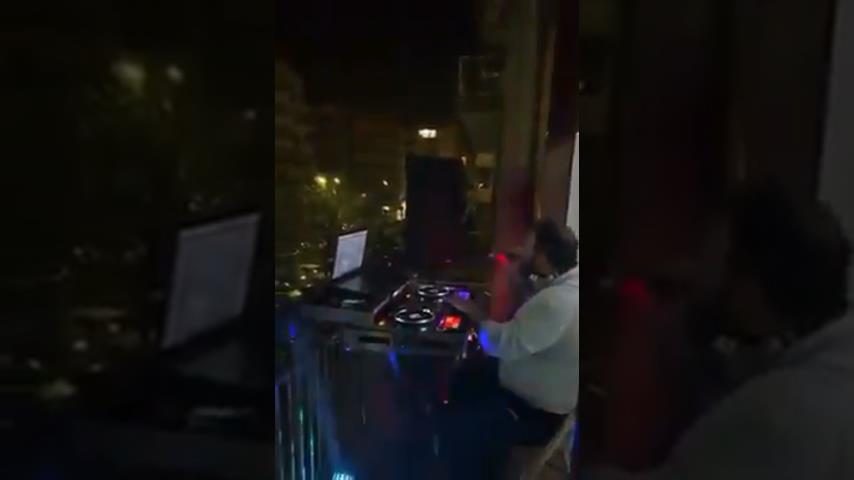 DJ v Itálii dává zvláštní výkon z balkonu svého domu.