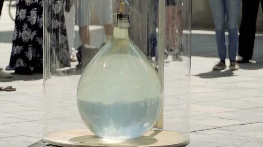 Jak může být tlak generovaný z 1 litru vody rozbít skleněné nádoby o objemu 50 litrů; Experiment proveden poprvé v 17. století Blaise Pascal, se znovu provádí na Princetonské univerzitě ve Spojených státech, aby demonstroval fenomén zvaný „hydrostatický paradox“.