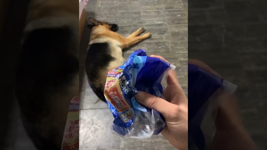 Pes dobře ví, zvuk, který dělá balení sušenek, a okamžitě se otočí hlavu, když uslyšel.