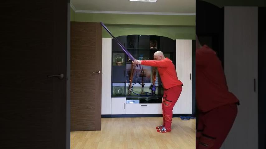 během omezení, muž našel způsob, jak pracovat na domácí půdě s gumičkou, která se opírá o dveře. Ale tento improvizovaný výkon zařízení není příliš bezpečné.