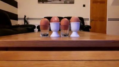 Čtyři vejce na stole zpívající 'I Want To Break Free' od Queen.