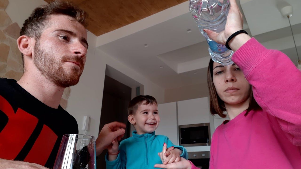 Při omezení dopravy v Itálii, táta a máma ukazuje kouzelný trik s vodou v jejich malým synem. Trochu se zdá být obzvláště zapůsobil, a smát se nekonečně.