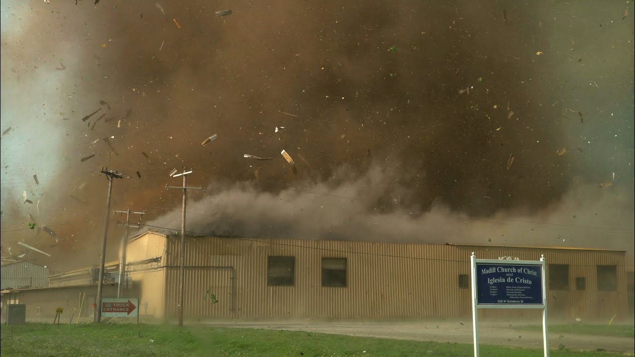 22. dubna 2020, řidič zaznamenává průchod silného hurikánu z malého města Madill v Oklahomě v USA.