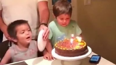 Během narození jeho bratra, malý chlapec se neustále snaží vyhodit svíčky. Táta na něj hlídá a brání mu v uhasení svíček umístěním talíře mezi něj a dort.