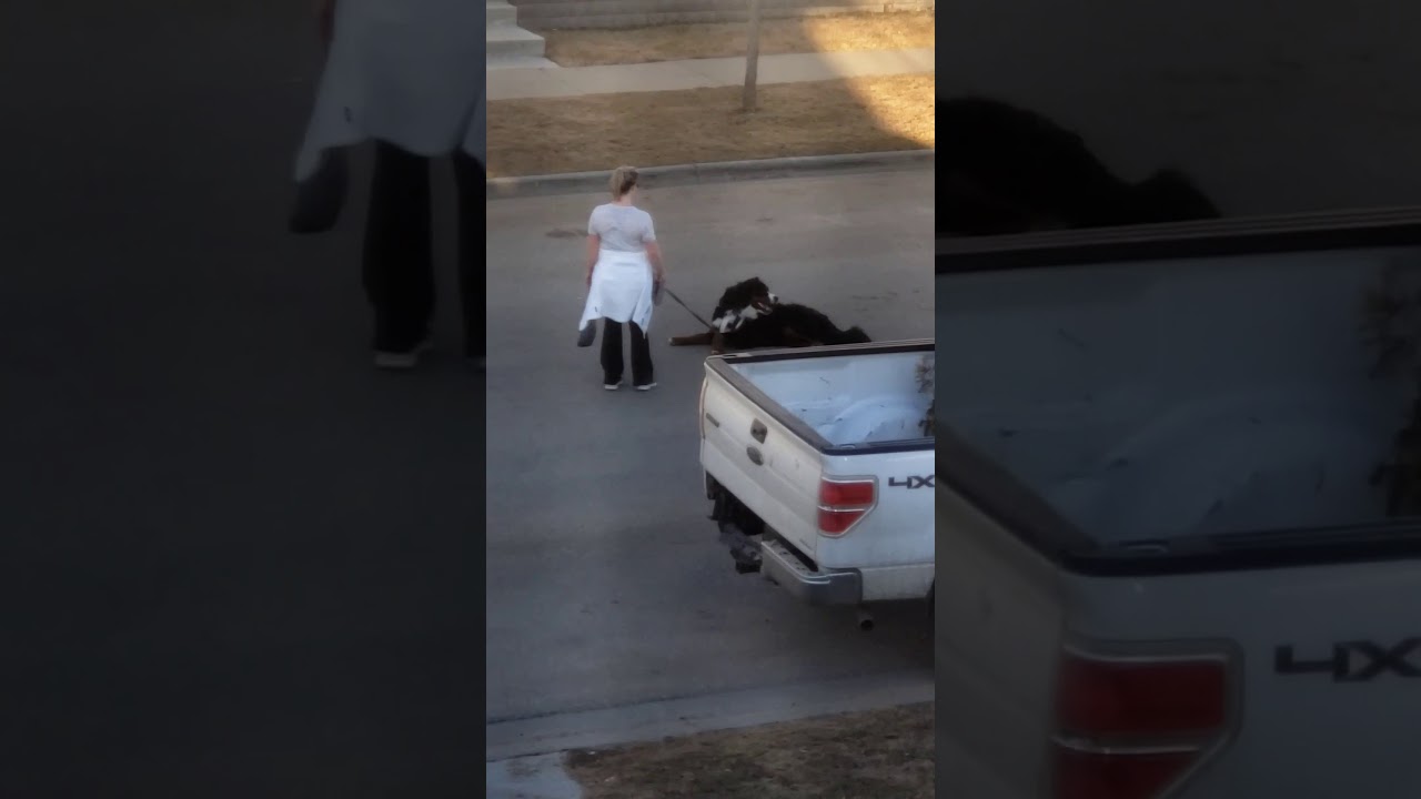 Na silnici v kanadské Albertě, žena chodí se svým velkým psem, když se druhý rozhodne, že už nechce chodit. Takže si lehl uprostřed silnice a odmítl vstát, bez ohledu na to, jak se jeho majitel snažil. Nakonec mu žena jen sundala vodítko a začala odcházet – což bylo mimořádně účinné, poté, co pes okamžitě vstal plný energie.