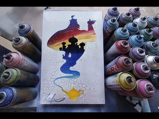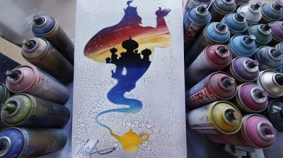 umělec Štefan Skech z Německa vytváří nádherný fosforeskující obraz na téma Aladinova ginu.