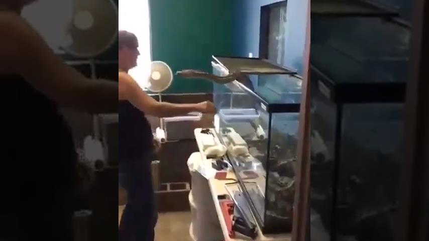 Žena chce ukázat fotoaparátu divoký a extrémně nebezpečný python, který má ve svém domě. Jaká újma by se mohla stát?;