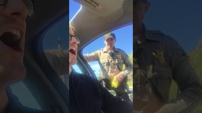 Policejní důstojník se pokouší postříkat řidiče pepřovým sprejem pro překročení rychlosti a odmítnutí vystoupit z auta