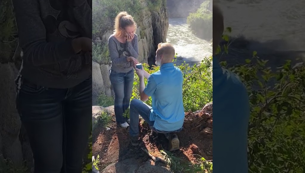 V neděli 5. července 2020 v Ashtonu v Idahu, muž chtěl pod vodopádem učinit působivý návrh manželství. Ale ve chvíli, kdy nabídne prsten svému milovanému, spadne do rokle. Celá scéna byla jen vtip, a skutečný prsten byl v jiné krabici.