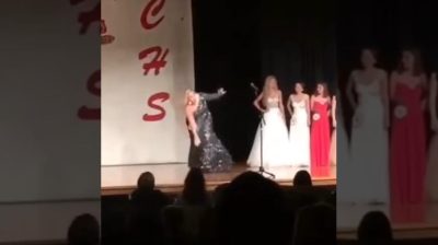 V soutěži krásy, žena se zotavuje dramaticky po poměrně trapném incidentu.