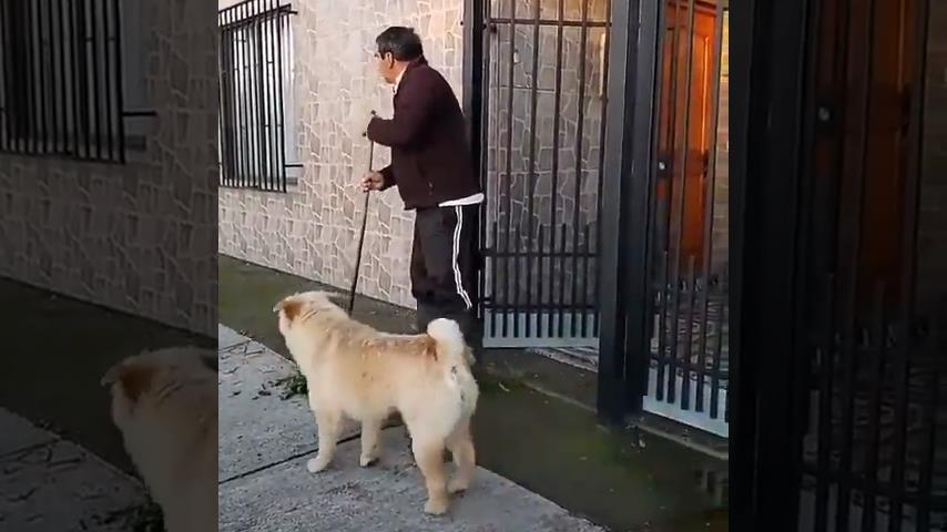 Muž předstírá, že zametl před svým domem, za účelem sledování hádky v sousedství.