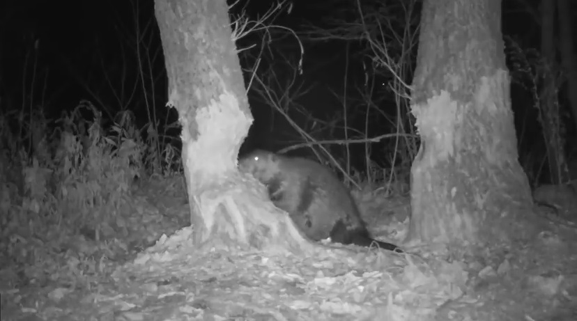V Maine, Spojené státy americké, William Sturtevant postavil fotoaparát, aby sledoval bobra poblíž řeky. Bobr pomalu snědl kmen stromu, dokud to konečně nepadne.