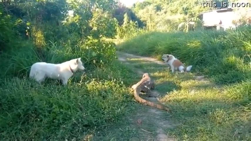 V Thajsku, barman je konfrontován dvěma psy. Baran zasáhl jednoho ze psů svým silným ocasem a vyděsil ho.