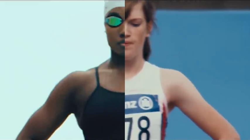 Krásná reklama Nike představující záběry sportovců z různých sportovních organizací, v tuto chvíli provádějí téměř stejné nebo podobné pohyby.