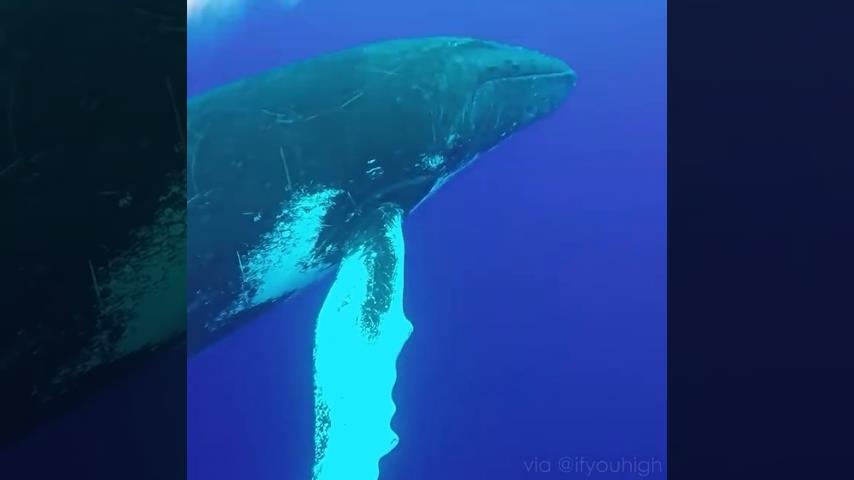 Velkolepý skok velryby je zaznamenán potápěčem dovnitř a ven z vody.