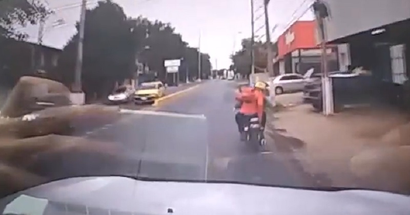 Řidič automobilu v Paraguay se rozhodl jednat, když viděl před sebou loupež ženy dvěma lidmi na motorce. Jel autem ke zlodějům, bít do jejich motocyklu a odhodit je na silnici. O dva později byli zatčeni policií.
