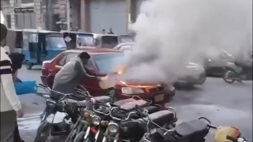 Jako kolemjdoucí se pokuste uhasit plameny v hořícím autě, muž zaútočí na oheň stoličkou.