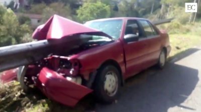 Ve městě Turón ve Španělsku, řidič přibil své auto na ochrannou lištu, jako by to byl špíz.