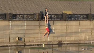 Tři muži se snaží získat míč plovoucí na hladině řeky v ruském Belgorodu, ale plán, který vymysleli, se ukázal být komplikovanější, než očekávali. Jeden z nich stojí vzhůru nohama, zatímco další dva drží nohy, aby chytil míč, ale vyklouzne z rukou svých přátel a spadne do řeky. nicméně, chytí míč mnohem jednodušší a mise bude korunována úspěchem.