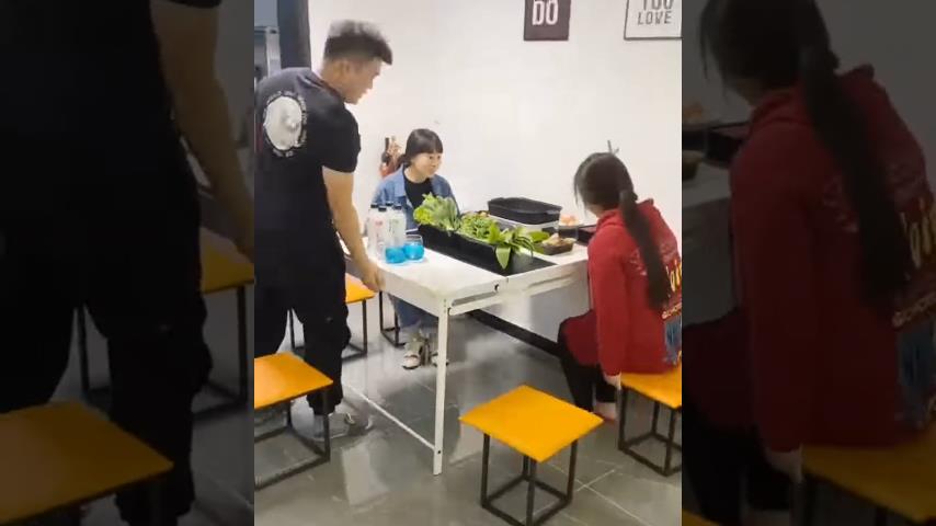 Skládací police, která se promění ve stůl, aniž byste na něm museli přesouvat předměty.