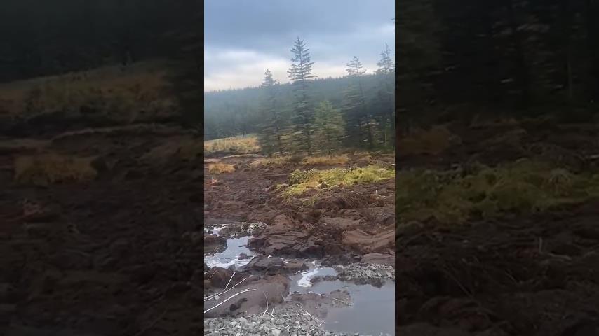 Stromy na svahu v Donegalu v Irsku, po uklouznutí na zemi sklouznout dolů. Incident se stal v pátek 13. listopadu na větrné farmě Meenbog, a mnozí věří, že za tento fenomén je zodpovědná práce na výstavbě parku.