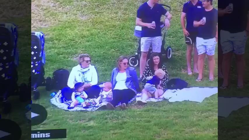 Dítě začíná padat na malém svahu a jeho matka běží, aby ho chytila.