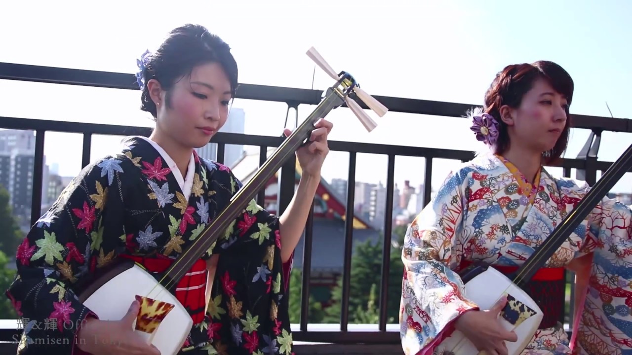 Samisen je třístrunný tradiční japonský hudební nástroj hrající perem. Dvě ženy v Tokiu mistrovsky hrají píseň se samisenem, připomínající rychlé kytary z kusu kovu.
