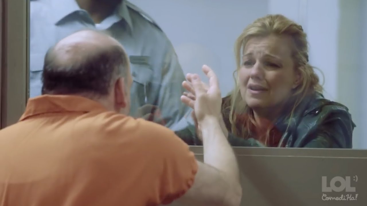 Slzy smutku vězně, když jeho žena musí opustit pokoj pro hosty věznice. Skica z holandské show LOL ComediHa!