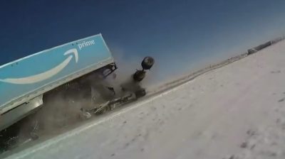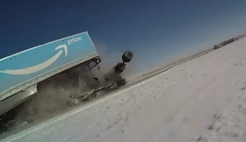 V neděli 24. ledna ve Wyomingu ve Spojených státech, policista zaznamená násilnou srážku mezi dvěma kamiony, což mělo za následek oddělení dvou os. Jedna z os byla vypálena na policistu, a prošel velmi blízko.